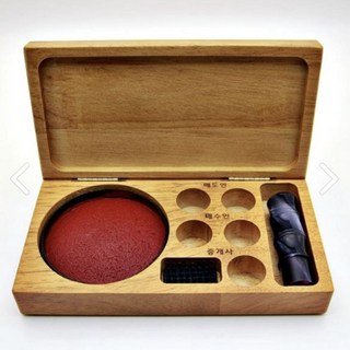 부동산 인주케이스 올인원 고급 원목 도장케이스 인주세트 인주함